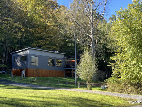 We also did a review of the structural and environmental design, creating a river-site-specific cabin by placing the home on piers and adjusting some construction techniques to fit more efficiently with the homeowner's budget.
